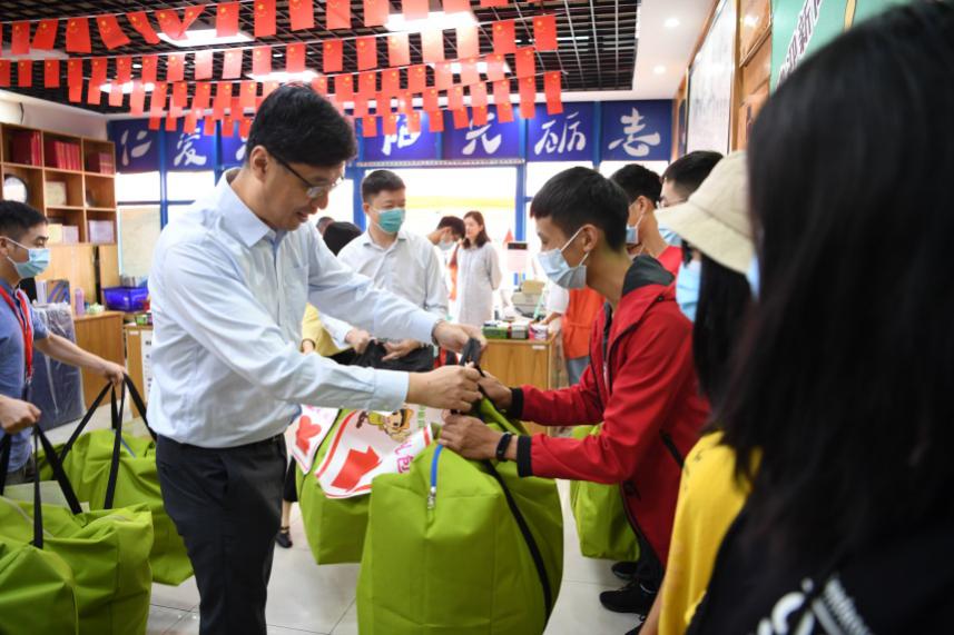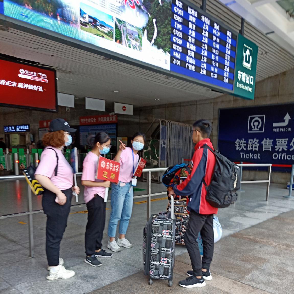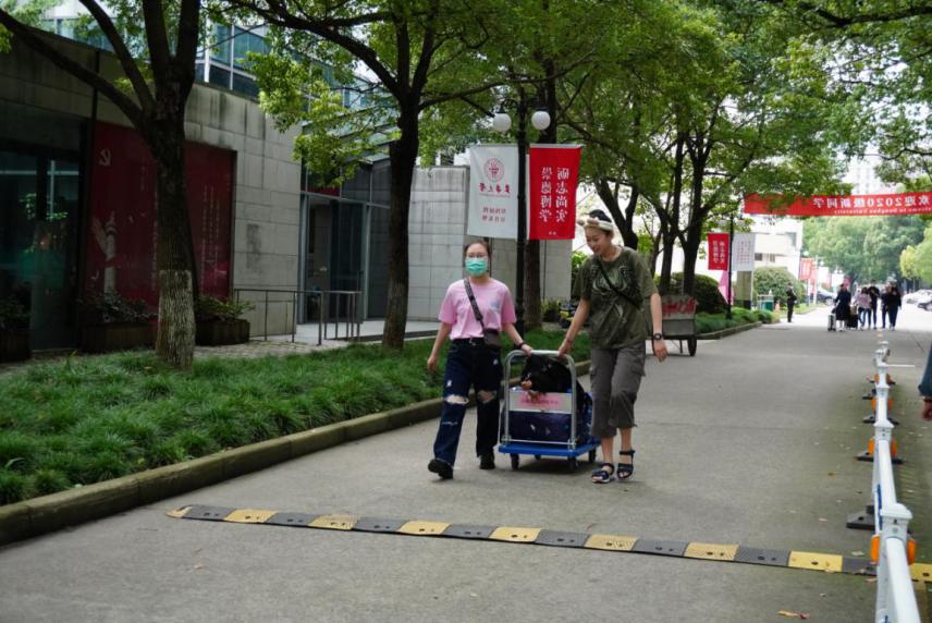 迎新工作的有序开展离不开在志愿服务岗位上默默奉献的师生志愿者们。今年,按照疫情防控要求,除特殊情况外家长不得进校,记者看到,从校门到宿舍的路上,小拖车、三轮车、电瓶车一起“亮相”,各式各样的运输大队“隆隆地”一次又一次穿梭在校园中,师生志愿者们不辞辛苦,帮新生把行李搬运至宿舍,“无缝对接”暖心服务新生入校的最后“一公里”。迎新期间,共有来自两个校区的1000余人次志愿者参与其中,在机场、火车站、地铁站等校外接站点和报道处、行李处、宿舍区、校门口等共计30个服务点开展迎新志愿服务。