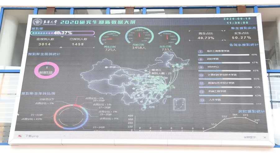 “热烈欢迎2020级新同学”。醒目的横幅标语、飘扬的彩旗、鲜明的导引指示牌……校园里处处洋溢着浓厚而热烈的迎新氛围。记者看到不少“新东华人”一大早就怀着喜悦的心情来到报到点办理注册报到手续。为保障广大新生顺利开启崭新大学生活,学校各部门积极优化各项手续办理流程,为新生提供方便迅捷、周全贴心的报到服务。根据今年疫情防控实际,财务处全力打造起网银缴费、银行代扣、自助缴费机、微信扫码缴费、微信公众号缴费、支付宝扫码缴费“六位一体”缴费系统,大大方便了学生,得到一致认可点赞。为帮助新生更快了解熟悉校园,融入大学生活,信息办上线“东华小助手”,全天24小时在线自动解答师生提出的各类问题,提供暖心服务。同时还增加了数据迎新大屏和企业微信迎新动态展示,可以在现场和手机上实时查看新生报到动态,让整体迎新工作情况一目了然。