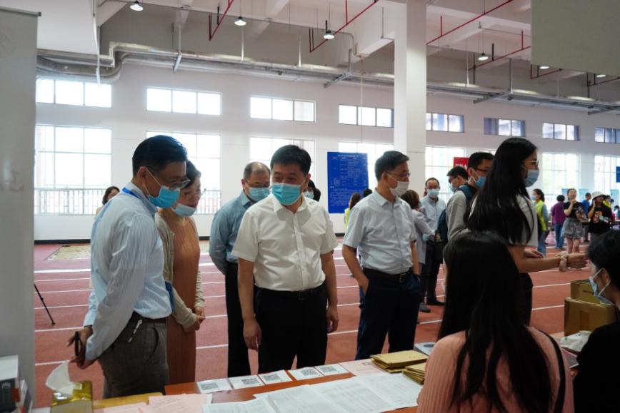 (校领导在迎新一线慰问工作人员并同新生亲切交流)