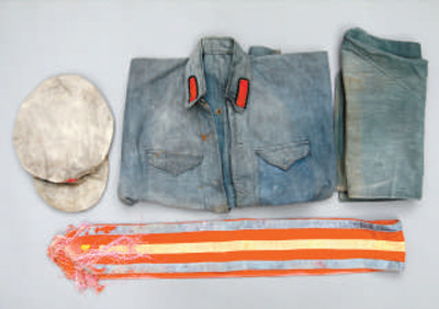 “上衣为中山装式,有两个上贴口袋,领口佩缀红领章;裤子为普通样式,配绑腿;军帽为八角帽,缀有布质红五角星帽徽。”这套简朴的军装(见图,资料照片),是红军历史上第一套正规军装,于1929年3月在福建长汀设计制作,目前陈列于古田会议纪念馆。