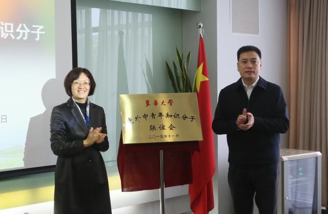 (刘淑慧、曾昭斌共同为校党外中青年知识分子联谊会揭牌)
