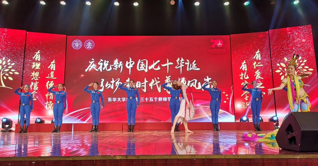 庆祝活动在舞蹈、合唱等高质量师生艺术节目的基础上,融入大量反映优秀教师风貌的精美短视频,生动立体化地展现东华教职工“积极向上、爱校荣校、崇尚学术、追求卓越、敬业奉献”的良好精神风貌。庆祝活动处处体现着精心、贴心、暖心,不仅采用融媒体方式全方位营造欢庆氛围,而且为老师们准备了师德文化宣传品教学手账,还通过启用网络直播,让无法来到活动现场的教职工也能远程感受到来自学校的亲切问候。此外,整个九月学校还以开设讲座、心理咨询、慰问、ETC业务上门办理等多种形式为教职工送上“关爱大礼包”,从贴心事、民生事让大家感受学校的温暖。