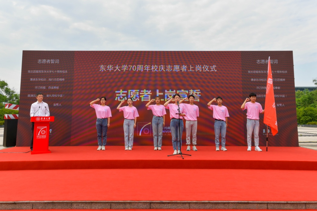 当天倒计时活动还举行了70周年校庆志愿者上岗、纪念卫衣暨志愿者着装发布、校友时光影像馆发布等仪式活动。据悉,自6月8日正式启动校庆志愿者招募以来,共计吸引800余名学生报名,经面试和筛选,目前接待、会务、礼仪、秩序、宣传、活动和机动七大组别的350名志愿者均已招募就位。