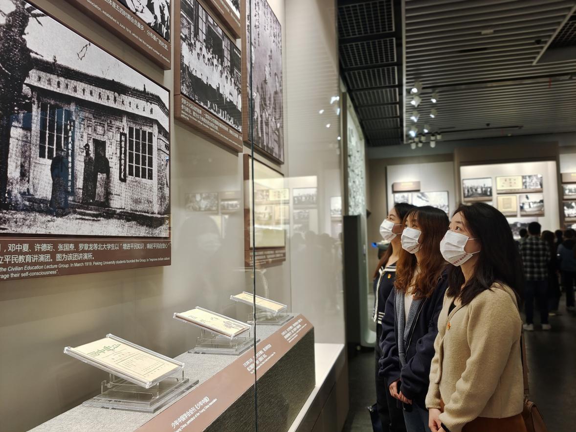 重温初心、感悟初心、践行初心,才能把党的根本宗旨和奋斗目标内化于心、外化于行。在庄严的中共一大纪念馆,信息学院本科生第四党支部与人文学院尚实先锋党支部师生党员,面对鲜红的党旗,重温入党誓词,追溯入党初心。“在党的诞生地重温入党誓词,我觉得这是特别神圣的时刻。”杜怡宁用“一生一次”诠释了对加入中国共产党的情感:“加入中国共产党是我的梦想和追求,今天参观中共一大纪念馆,我充分了解了党的百年历史,这对我今后无论是在学习、工作,还是生活中,都是一种激励和鞭策。”仰望面前的这一抹鲜红,党员们纷纷表示要争做时代的先锋、社会的脊梁、群众的楷模,发挥典型示范引领作用,以知促行、以行促知。