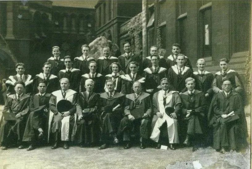 陈人哲(前排左一)1947年在英国曼彻斯特大学留学获硕士学位